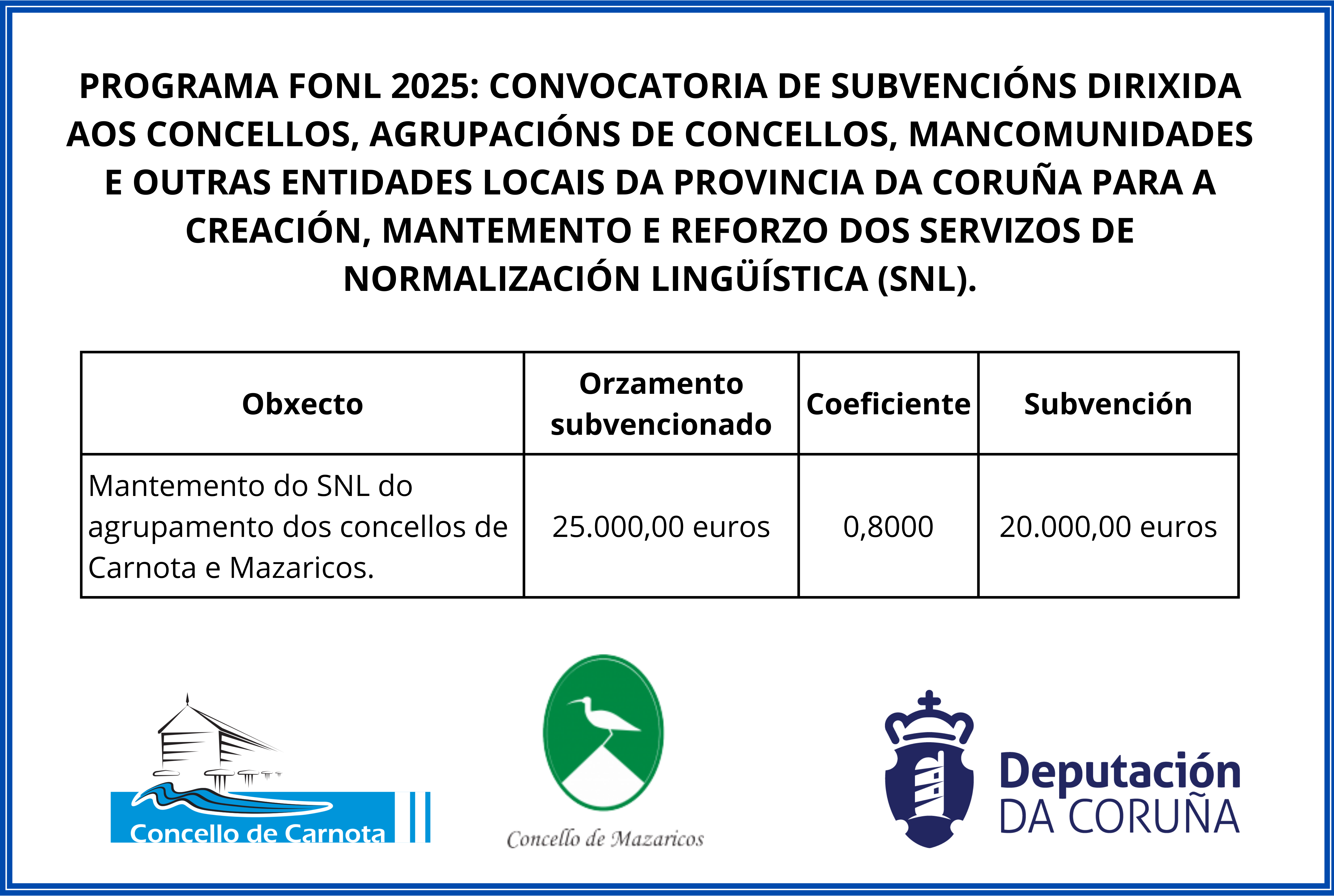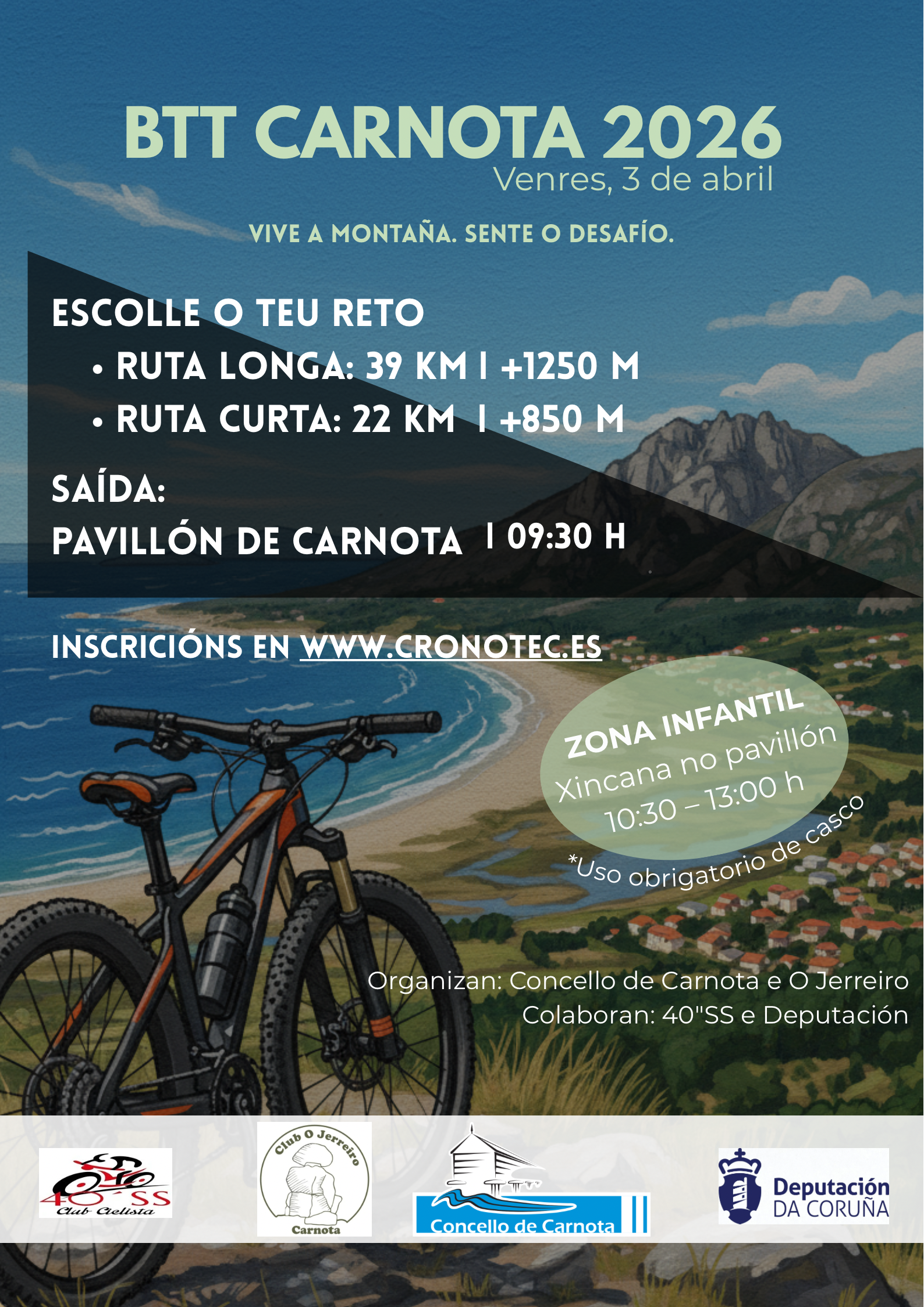 O Concello de Carnota e o Clube O Jerreiro poñen nova data para a andaina circular pola Senda Azul e Senda Verde, que tivera que ser aprazada por mor do mal tempo. A nova data xa está fixada para o vindeiro domingo 15 de marzo, así que volvemos ao camiño! Data:...